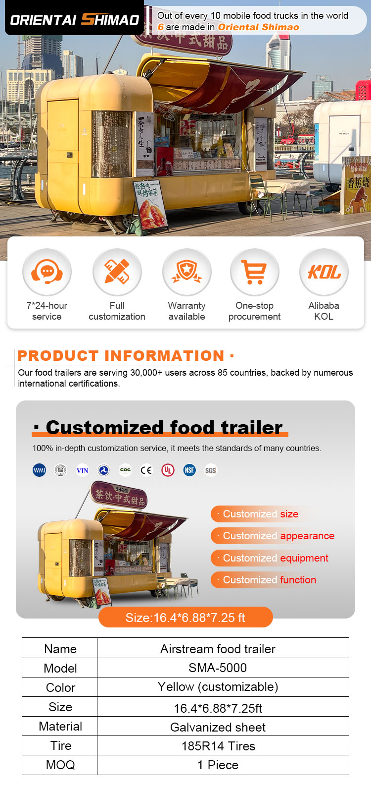 हम कॉफी कार्ट मोबाइल प्रमाणपत्र प्रदान कर सकते हैं: डीओटी, सीई, एसजीएस, एससीआई, आईएसओ, सीओसी,