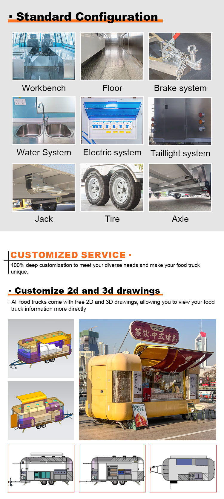 फ़ूड ट्रेलर चलाने योग्य फ़ूड ट्रक मोबाइल किचन कैटरिंग स्ट्रीट फ़ूड ट्रेलर कॉन्सेप्ट फ़ूड ट्रक
