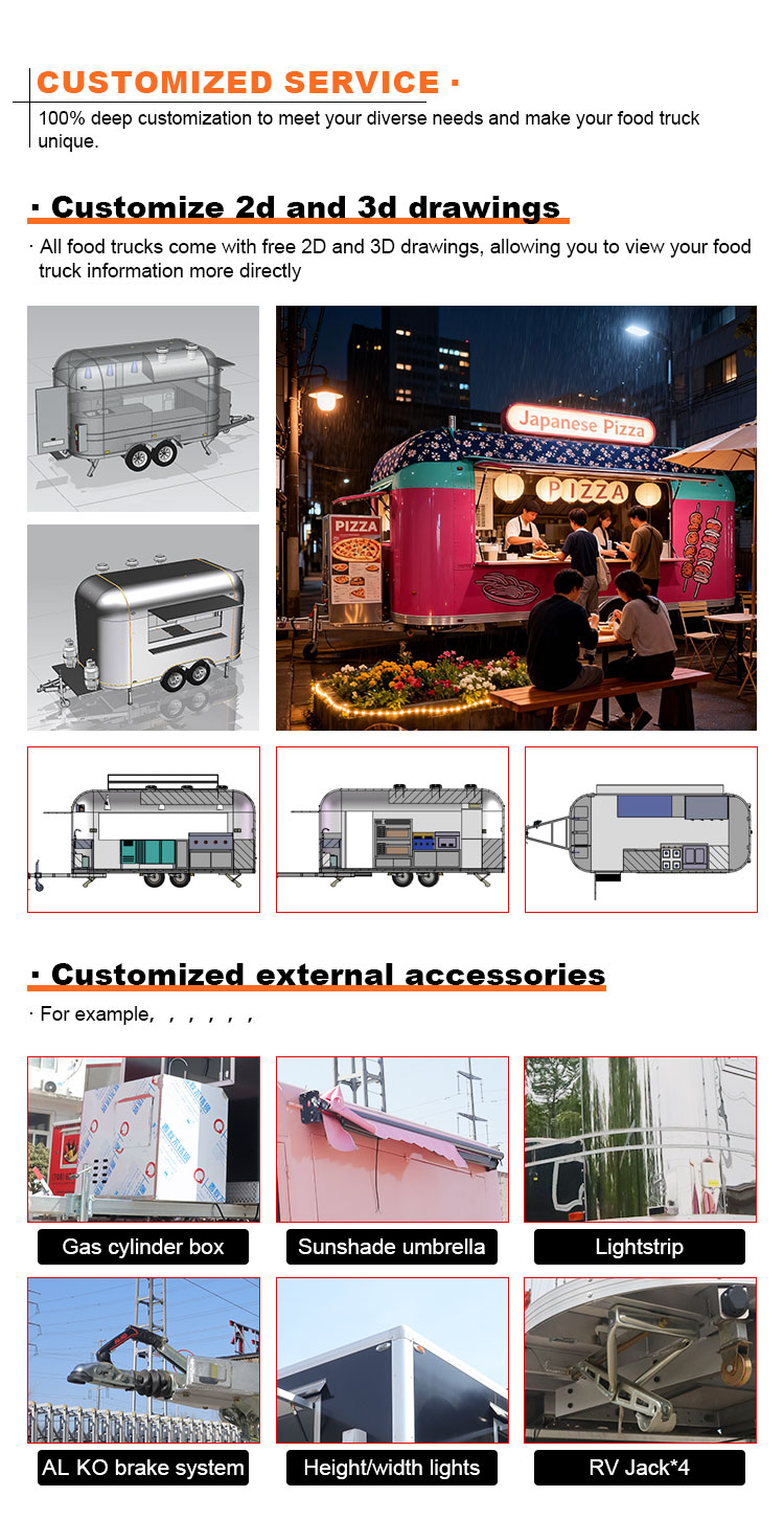 फ़ूड कार्ट मोबाइल किचन वाणिज्यिक रेस्तरां उपकरण कैटरिंग इलेक्ट्रिक फ़ूड ट्रेलर स्ट्रीट उपयोग फ़ूड ट्रक