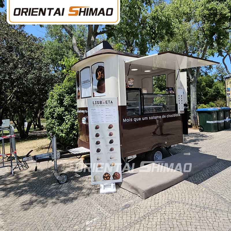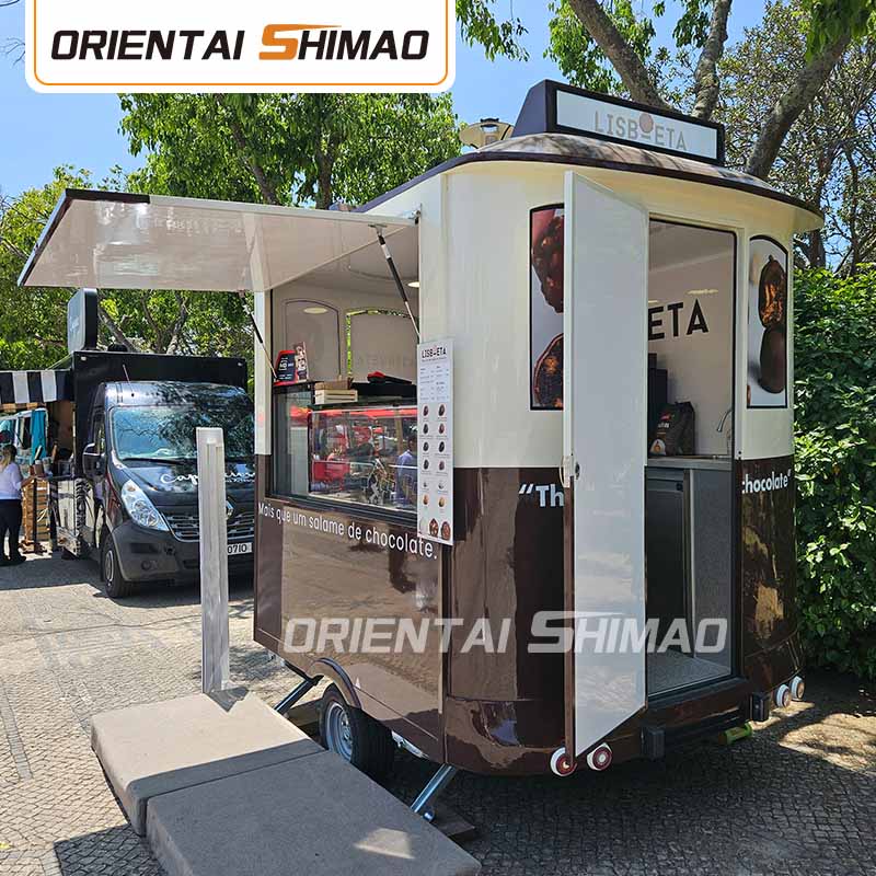 पहियों के विवरण और स्थापना के साथ खाद्य गाड़ियाँ