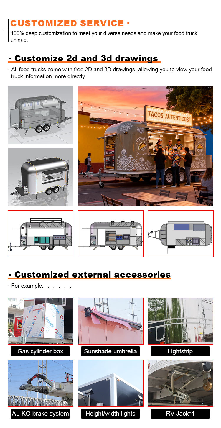 फ़ूड कार्ट मोबाइल किचन वाणिज्यिक रेस्तरां उपकरण कैटरिंग इलेक्ट्रिक फ़ूड ट्रेलर स्ट्रीट उपयोग फ़ूड ट्रक