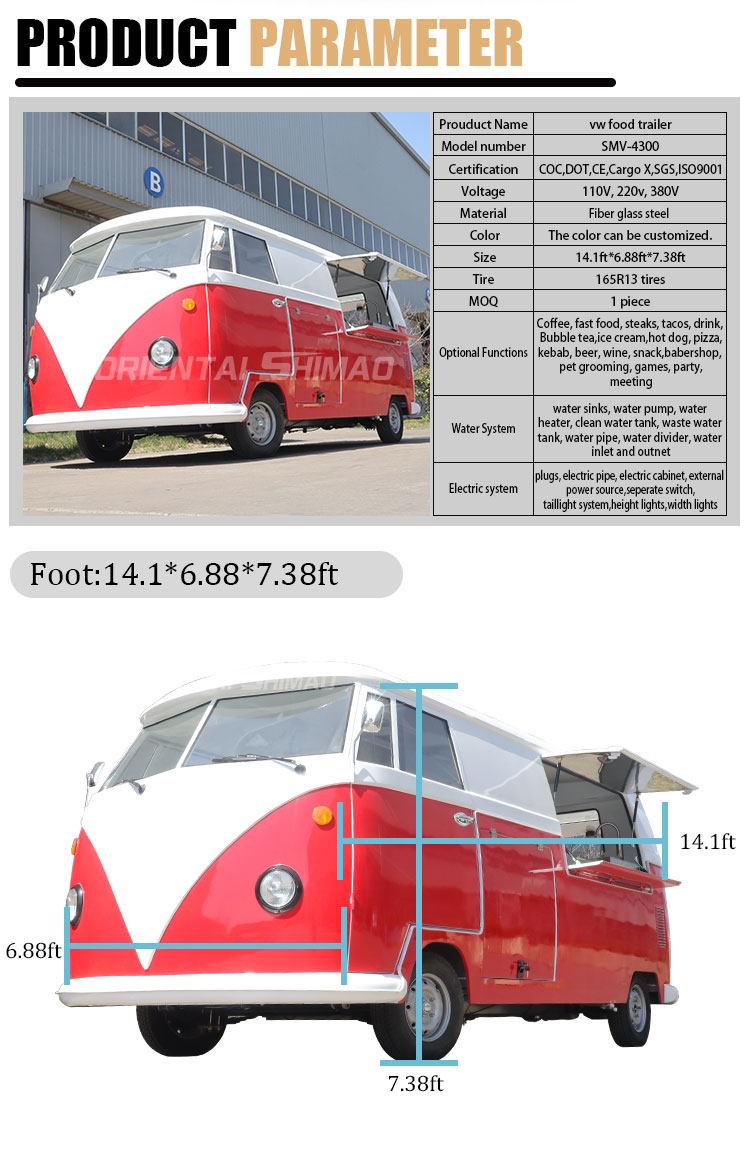 ओरिएंटल शिमाओ हाई रूफ वीडब्ल्यू फूड ट्रक (मॉडल: एसएमवी -4300) एक उच्च अंत मोबाइल रसोई समाधान है जो बहुमुखी खानपान और वाणिज्यिक अनुप्रयोगों के लिए डिज़ाइन किया गया है। चाहे वह स्ट्रीट फूड, कॉफी ड्रिंक, या विविध कैटरिंग सर्विसेज हो, यह ट्रेलर आपको कवर किया गया है। इसका निर्माण सावधानीपूर्वक चयनित गुणवत्ता सामग्री और उन्नत विनिर्माण प्रक्रियाओं का उपयोग करके किया गया है ताकि यह सुनिश्चित किया जा सके कि यह विभिन्न वातावरणों में बेहतर प्रदर्शन और लंबे समय तक चलने वाली स्थायित्व प्रदान करता है। स्ट्रीट एयरस्ट्रीम फूड ट्रेलर निस्संदेह उन उद्यमियों के लिए सबसे अच्छा विकल्प है जो मोबाइल खानपान उद्योग में अपनी पहचान बनाने के लिए देख रहे हैं।