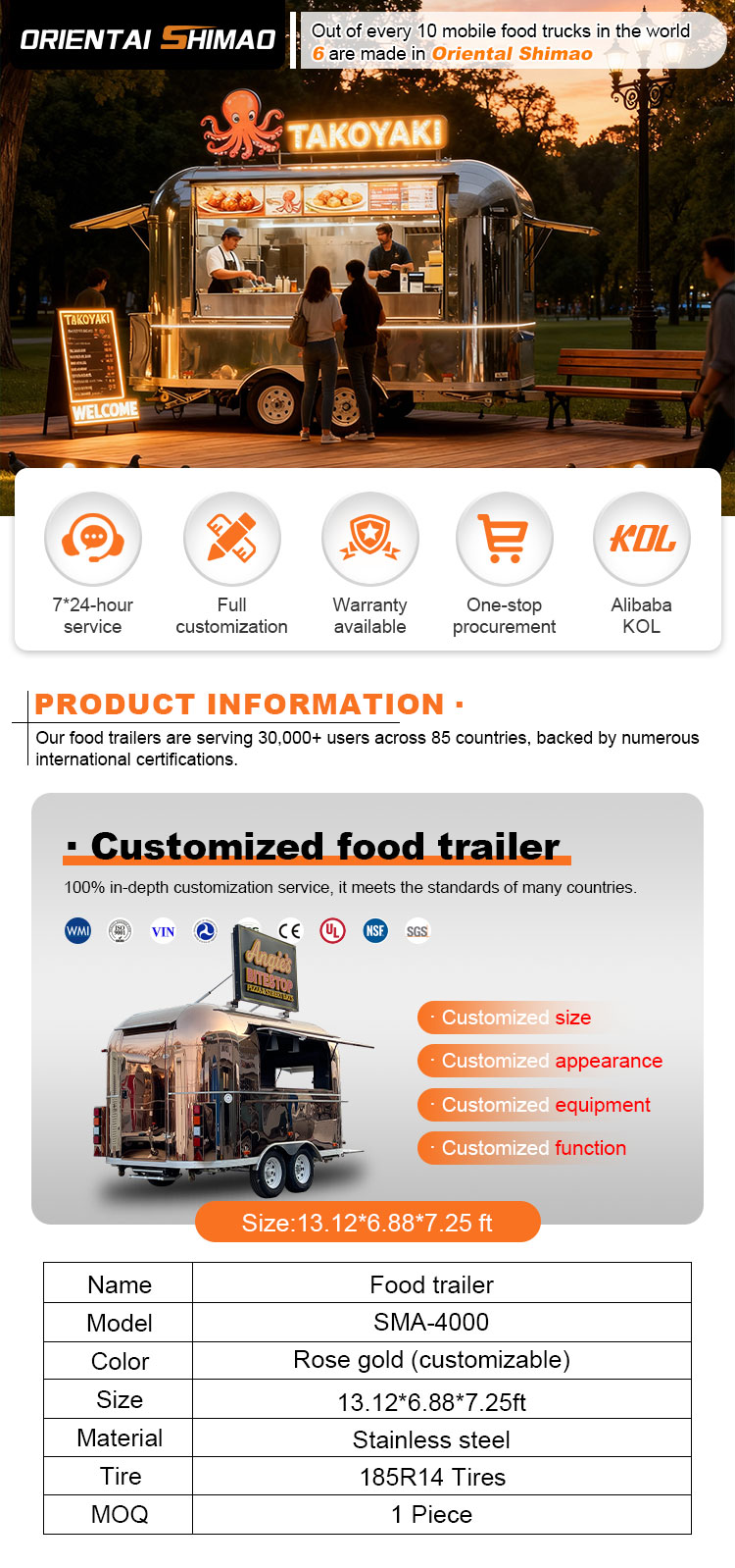 हम फूड कैटरिंग ट्रेलर्स प्रमाणपत्र प्रदान कर सकते हैं: डीओटी, सीई, एसजीएस, एससीआई, आईएसओ, सीओसी,