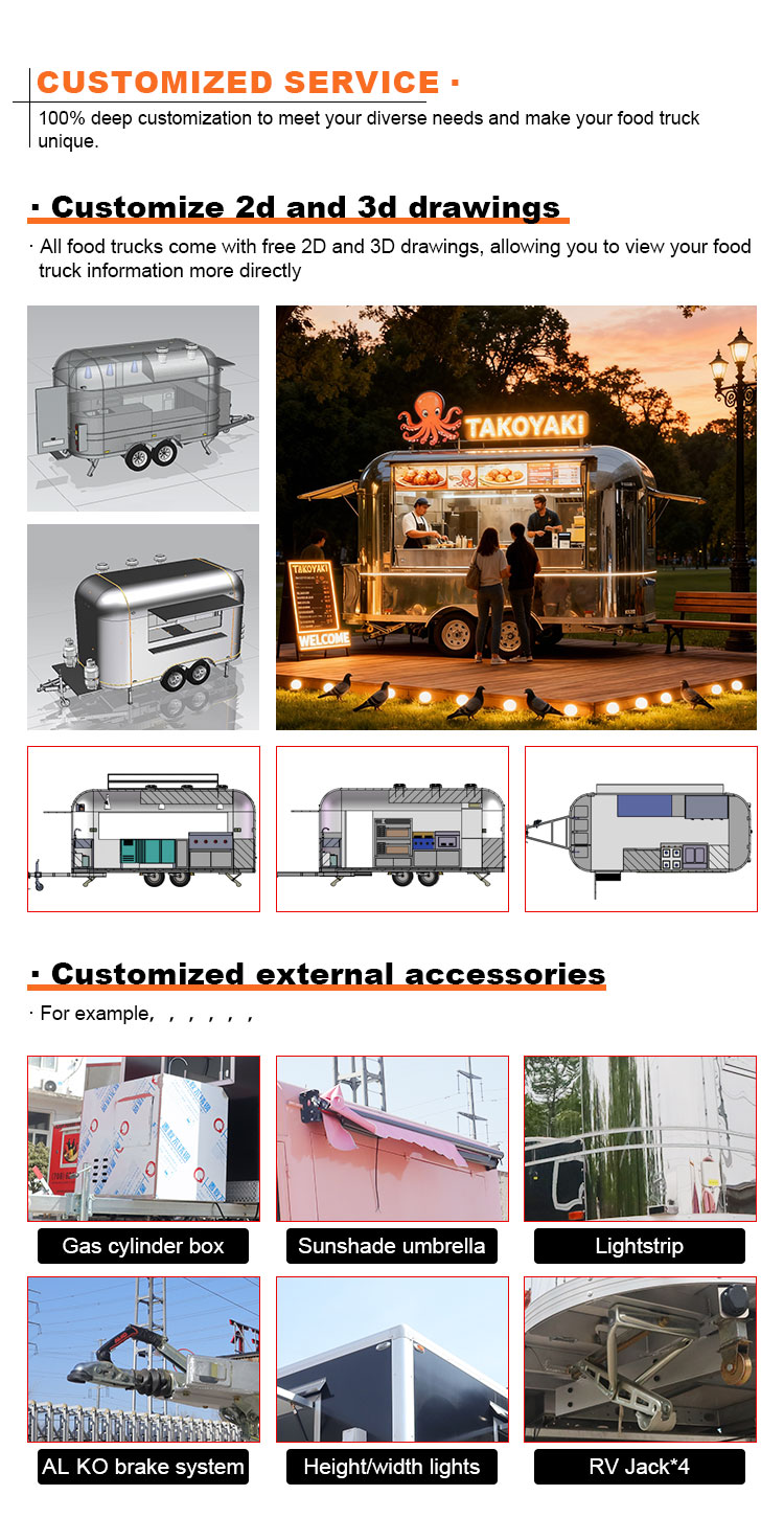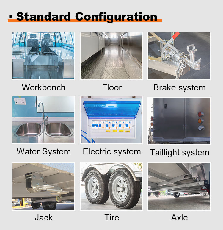 खाद्य ट्रक उपकरण वाणिज्यिक रसोई उपकरण खानपान मोबाइल खाद्य ट्रेलर खाद्य ट्रक