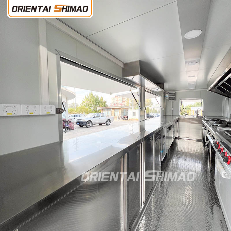 स्थान अनुकूलन: खाद्य ट्रक के आंतरिक स्थान का पूरा उपयोग करें, और बहु-मंजिला डिज़ाइन, फोल्डेबल या स्लाइडिंग फर्नीचर आदि के माध्यम से स्थान उपयोग में सुधार करें।