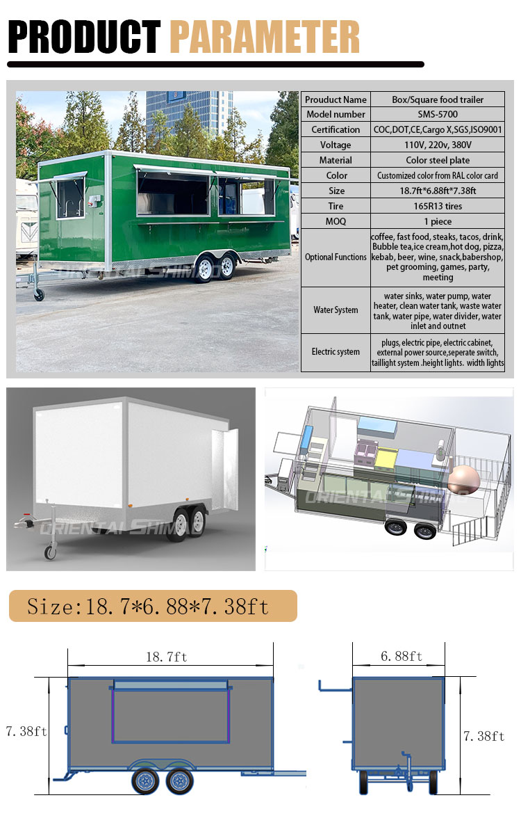मॉडलिंग और शैली: खाद्य ट्रक की उपस्थिति मॉडलिंग और शैली ग्राहकों को आकर्षित करने के लिए एक महत्वपूर्ण कारक है। इसे ग्राहकों की ब्रांड छवि, व्यावसायिक विशेषताओं या व्यक्तिगत प्राथमिकताओं, जैसे सुव्यवस्थित डिजाइन, रेट्रो शैली, आधुनिक सादगी आदि के अनुसार अनुकूलित किया जा सकता है।