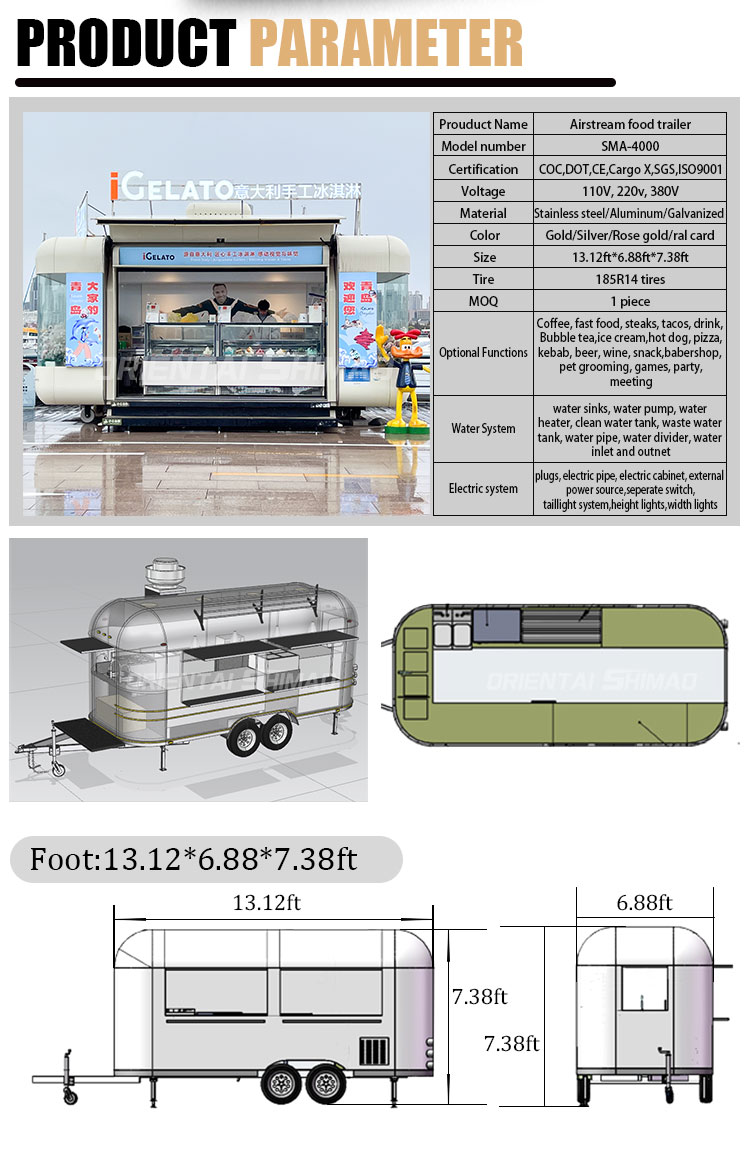 बिक्री विवरण और स्थापना के लिए मोबाइल फूड कार्ट