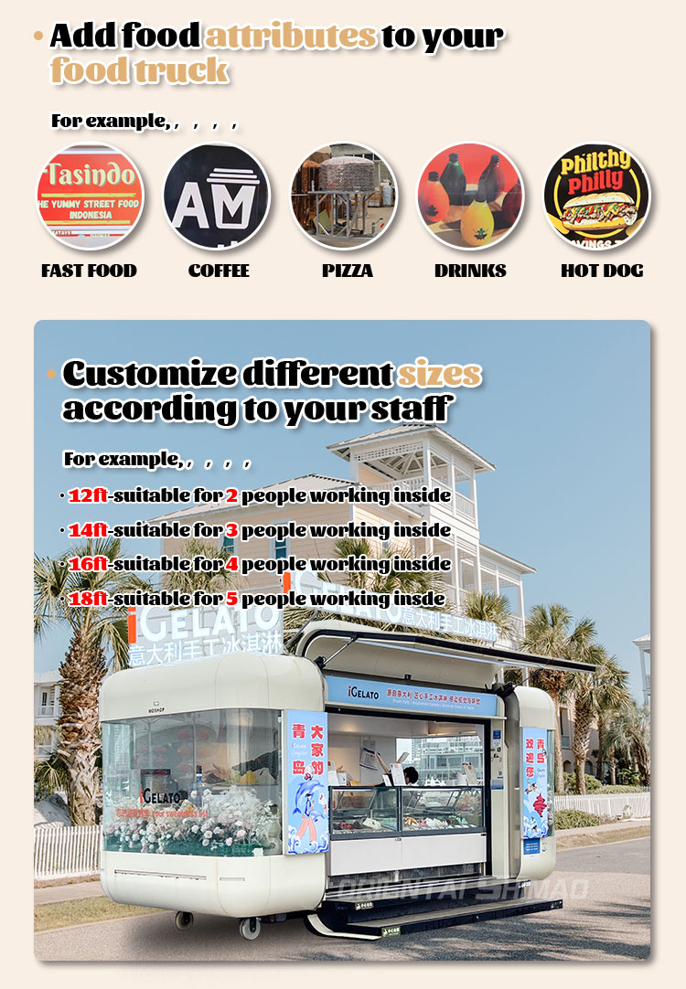 मॉडलिंग और शैली: खाद्य ट्रक की उपस्थिति मॉडलिंग और शैली ग्राहकों को आकर्षित करने के लिए एक महत्वपूर्ण कारक है। इसे ग्राहकों की ब्रांड छवि, व्यावसायिक विशेषताओं या व्यक्तिगत प्राथमिकताओं, जैसे सुव्यवस्थित डिजाइन, रेट्रो शैली, आधुनिक सादगी आदि के अनुसार अनुकूलित किया जा सकता है।