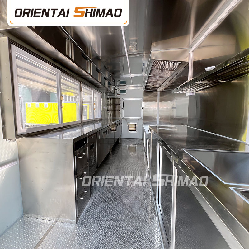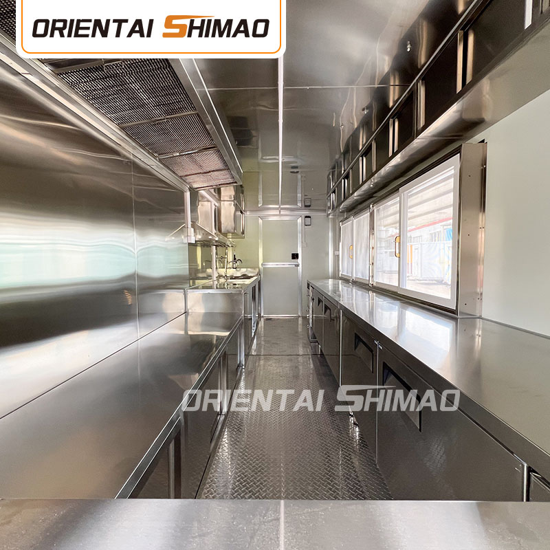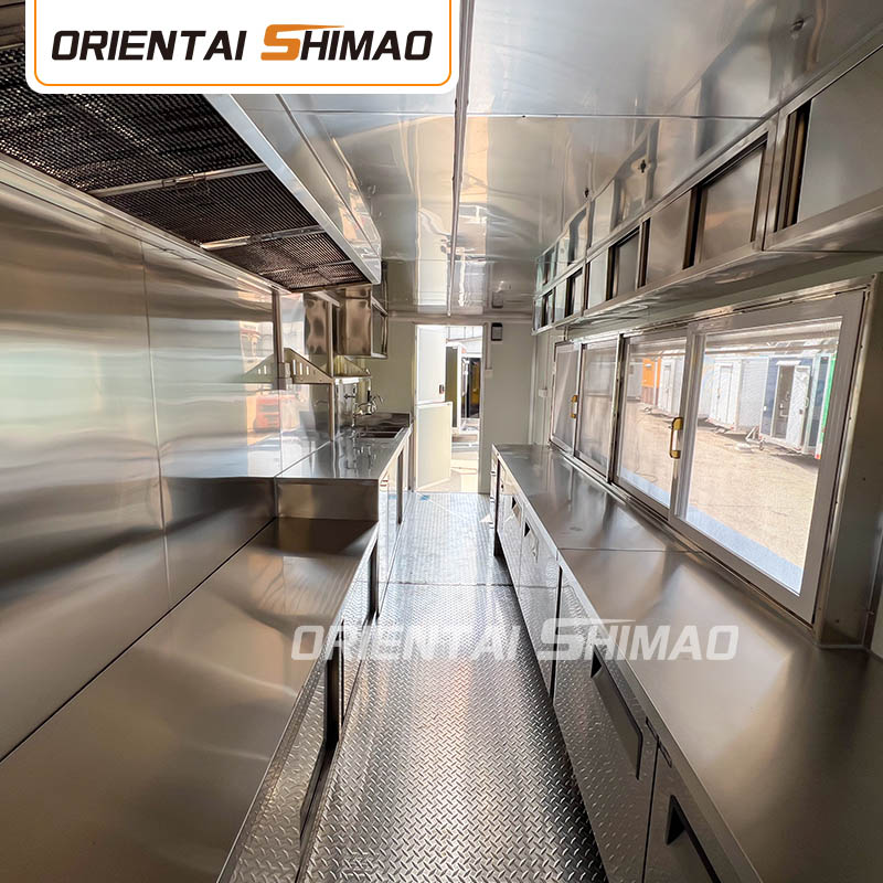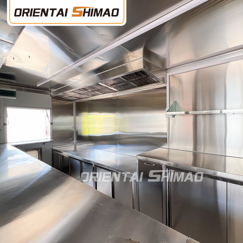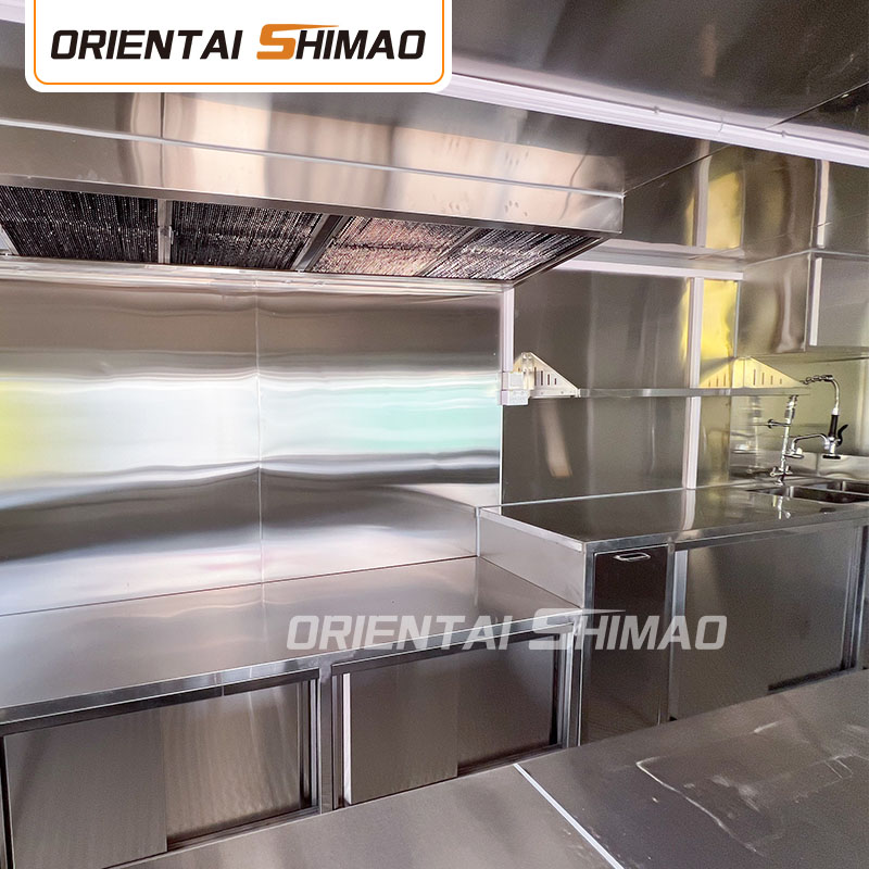 स्टेनलेस स्टील: बाहरी पैनलों के लिए स्टेनलेस स्टील भी आम विकल्पों में से एक है, विशेष रूप से 304 खाद्य-ग्रेड स्टेनलेस स्टील। स्टेनलेस स्टील संक्षारण प्रतिरोधी, गर्मी प्रतिरोधी और साफ करने में आसान है, जो इसे खाद्य ट्रकों की रसोई, काउंटर और भोजन के संपर्क में आने वाले अन्य क्षेत्रों में उपयोग के लिए उपयुक्त बनाता है। साथ ही, स्टेनलेस स्टील की सुंदरता खाद्य ट्रक की समग्र बनावट को भी बढ़ा सकती है।