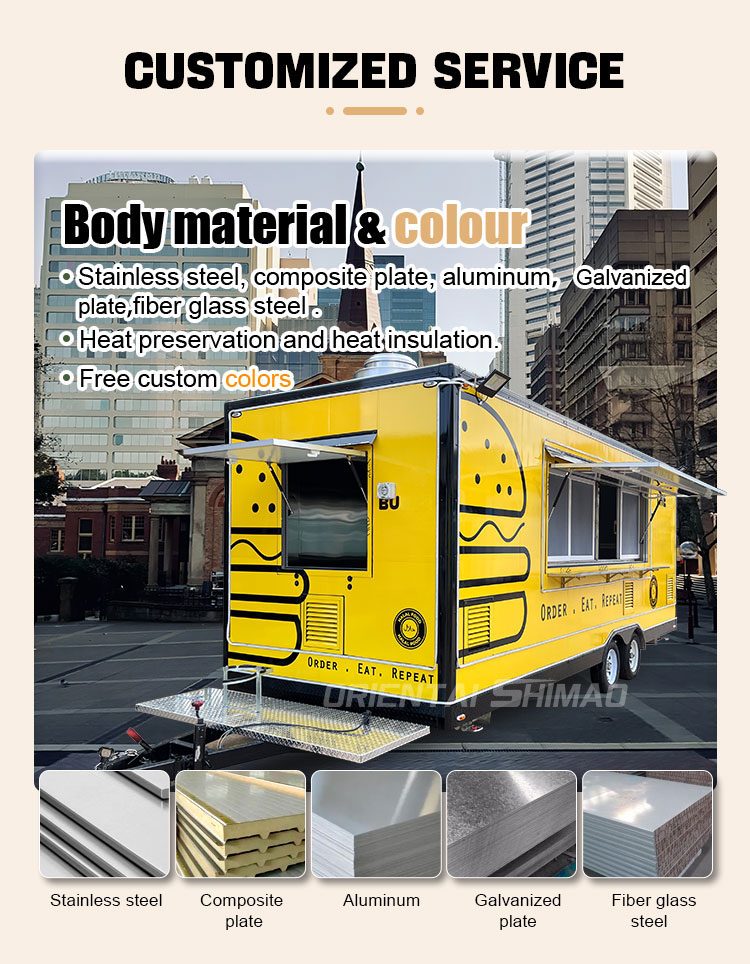 रंग और पैटर्न: खाद्य ट्रक की उपस्थिति को अधिक आकर्षक और ब्रांड छवि के अनुरूप बनाने के लिए विभिन्न प्रकार के रंग विकल्प और वैयक्तिकृत पैटर्न डिज़ाइन प्रदान करें।