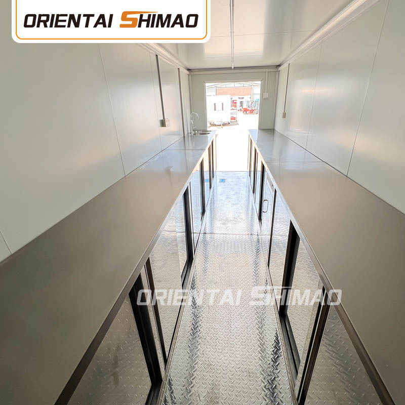 आकार अनुकूलन: पारंपरिक सीमाओं से परे, हम पारंपरिक खाद्य ट्रकों के आकार ढांचे को तोड़ते हैं और आपको आकार अनुकूलन समाधान की असीमित संभावनाएं प्रदान करते हैं। चाहे आप एक ऐसे मिनी फूड ट्रक की तलाश कर रहे हों जो छोटा और उत्तम हो, शहर की गलियों में यात्रा करना आसान हो, या एक लक्जरी मोबाइल रेस्तरां जो अधिक ग्राहकों और उपकरणों को समायोजित करने के लिए एक विशाल स्थान की इच्छा रखता हो, हम एक खाद्य ट्रक आकार बनाने के लिए आपकी विशिष्ट आवश्यकताओं के अनुसार सटीक माप और सावधानीपूर्वक डिजाइन कर सकते हैं जो वास्तविक जरूरतों को पूरा करता है और रचनात्मकता से भरा है।