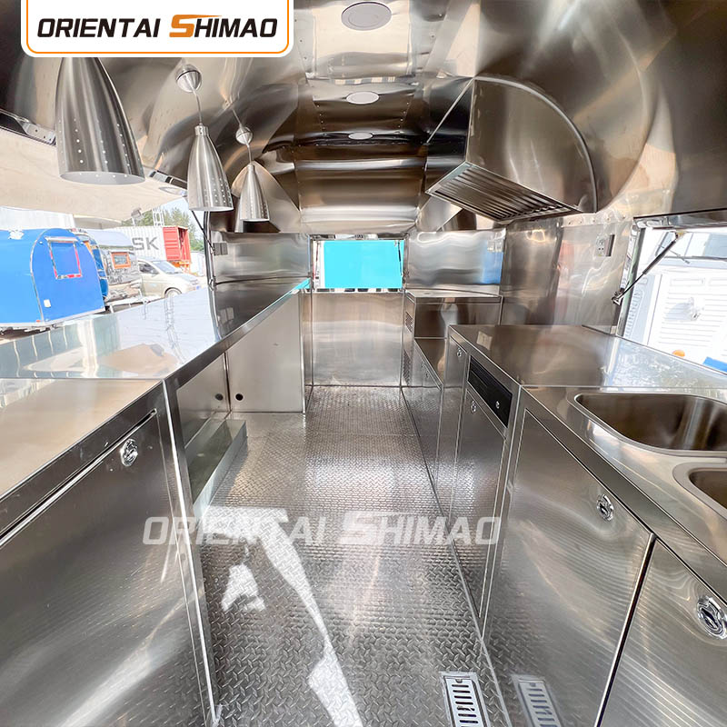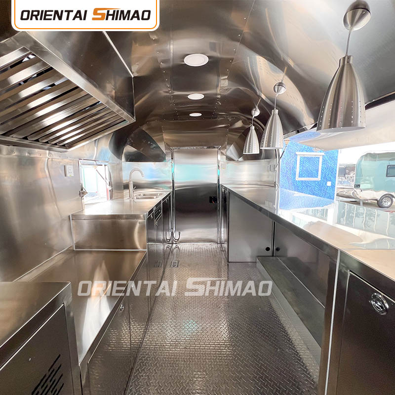 स्टेनलेस स्टील इंटीरियर: इंटीरियर स्टेनलेस स्टील से बना है, जो एक मजबूत और टिकाऊ इंटीरियर सुनिश्चित करता है जिसे साफ करना और रखरखाव करना आसान है और खाद्य स्वच्छता मानकों को पूरा करता है। स्टेनलेस स्टील के उपयोग से न केवल खाद्य ट्रक की सेवा जीवन में सुधार होता है, बल्कि भोजन तैयार करने की प्रक्रिया की स्वच्छता और सुरक्षा भी सुनिश्चित होती है।