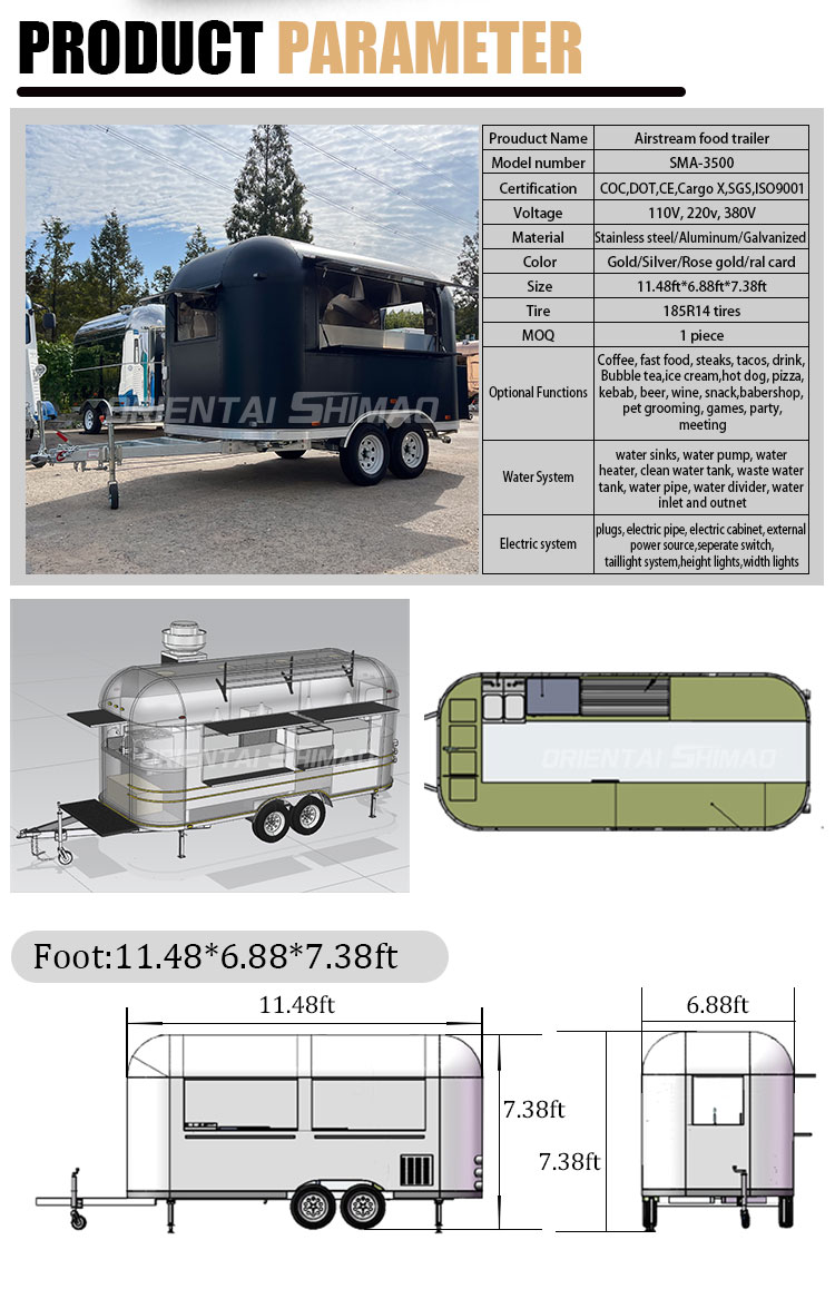गोल्डन स्टेनलेस स्टील: फूड ट्रक का बाहरी हिस्सा उच्च गुणवत्ता वाले गोल्डन स्टेनलेस स्टील से बना है। इस सामग्री में न केवल उत्कृष्ट संक्षारण और घर्षण प्रतिरोध है, बल्कि सुनहरी उपस्थिति दृश्य सुंदरता और उच्च श्रेणी की भावना को भी बढ़ाती है, ताकि खाद्य ट्रक विभिन्न वातावरणों में खड़ा रह सके।