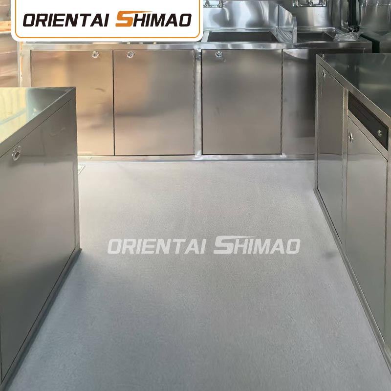 तीन परतों वाला फर्श: फूड ट्रक का फर्श तीन परतों वाला बनाया गया है। ऑपरेटरों की सुरक्षा सुनिश्चित करने के लिए शीर्ष परत गैर-पर्ची सतह वाला एक एल्यूमीनियम फर्श है; मध्य परत एक ऑस्ट्रेलियाई आयातित कीट-प्रूफ लकड़ी का बोर्ड है; और निचली परत एक ग्लास फाइबर प्रबलित प्लास्टिक है, जो नमी-प्रूफ और कीट-प्रूफ है और फर्श की सेवा जीवन को बढ़ाती है।