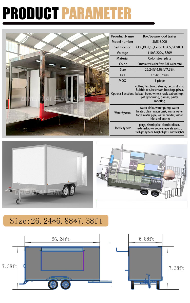 स्क्वायर फ़ूड वेंडिंग ट्रेलरबिक्री सामग्री परिचय के लिए