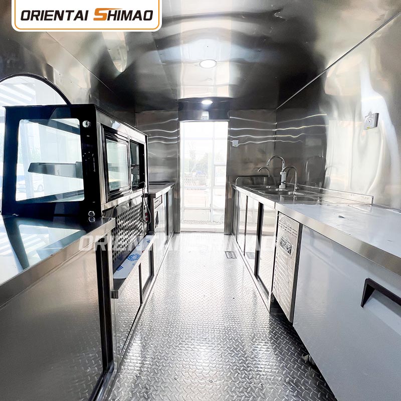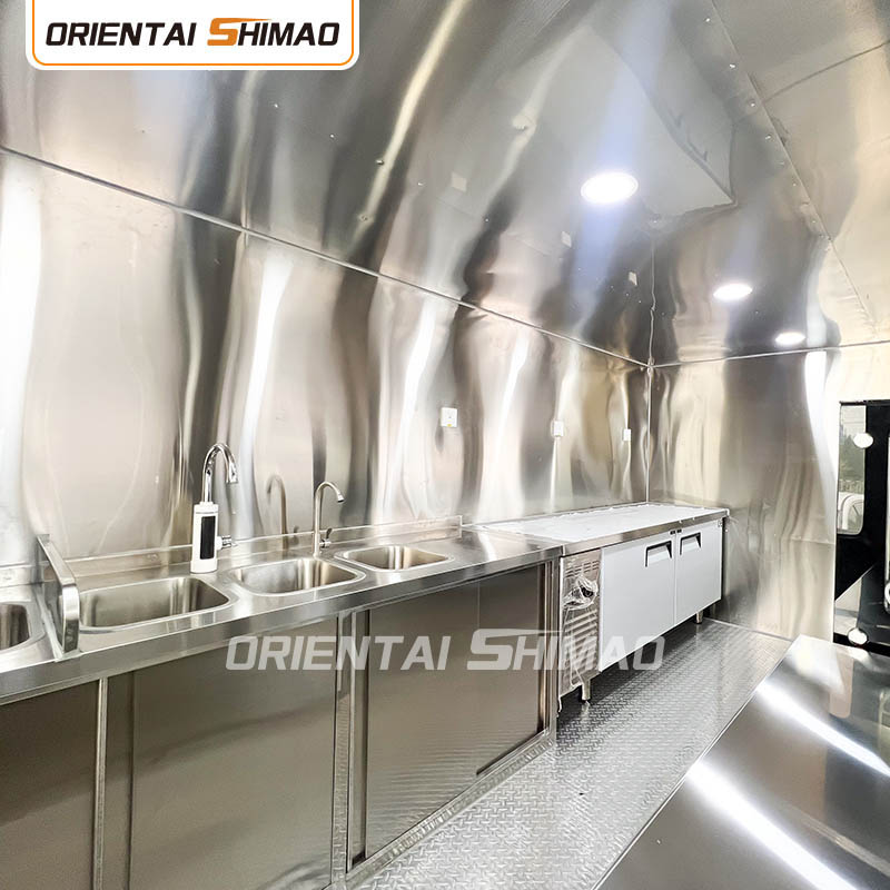 स्टेनलेस स्टील इंटीरियर: इंटीरियर स्टेनलेस स्टील से बना है, जो एक मजबूत और टिकाऊ इंटीरियर सुनिश्चित करता है जिसे साफ करना और रखरखाव करना आसान है और खाद्य स्वच्छता मानकों को पूरा करता है। स्टेनलेस स्टील के उपयोग से न केवल खाद्य ट्रक की सेवा जीवन में सुधार होता है, बल्कि भोजन तैयार करने की प्रक्रिया की स्वच्छता और सुरक्षा भी सुनिश्चित होती है।