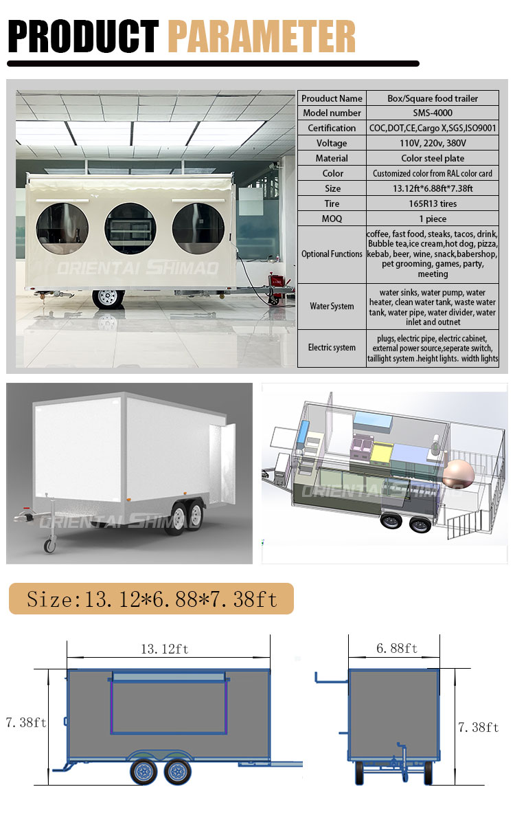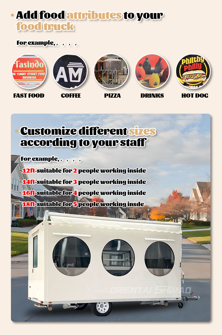 मॉडलिंग और शैली: खाद्य ट्रक की उपस्थिति मॉडलिंग और शैली ग्राहकों को आकर्षित करने के लिए एक महत्वपूर्ण कारक है। इसे ग्राहकों की ब्रांड छवि, व्यावसायिक विशेषताओं या व्यक्तिगत प्राथमिकताओं, जैसे सुव्यवस्थित डिजाइन, रेट्रो शैली, आधुनिक सादगी आदि के अनुसार अनुकूलित किया जा सकता है।