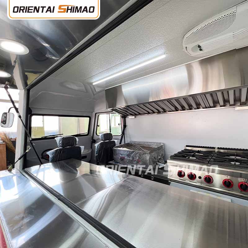 स्थान अनुकूलन: खाद्य ट्रक के आंतरिक स्थान का पूरा उपयोग करें, और बहु-मंजिला डिज़ाइन, फोल्डेबल या स्लाइडिंग फर्नीचर आदि के माध्यम से स्थान उपयोग में सुधार करें।