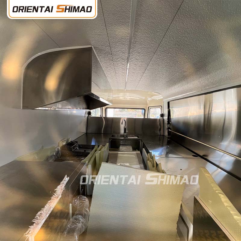स्टेनलेस स्टील इंटीरियर: इंटीरियर स्टेनलेस स्टील से बना है, जो एक मजबूत और टिकाऊ इंटीरियर सुनिश्चित करता है जिसे साफ करना और रखरखाव करना आसान है और खाद्य स्वच्छता मानकों को पूरा करता है। स्टेनलेस स्टील के उपयोग से न केवल खाद्य ट्रक की सेवा जीवन में सुधार होता है, बल्कि भोजन तैयार करने की प्रक्रिया की स्वच्छता और सुरक्षा भी सुनिश्चित होती है।