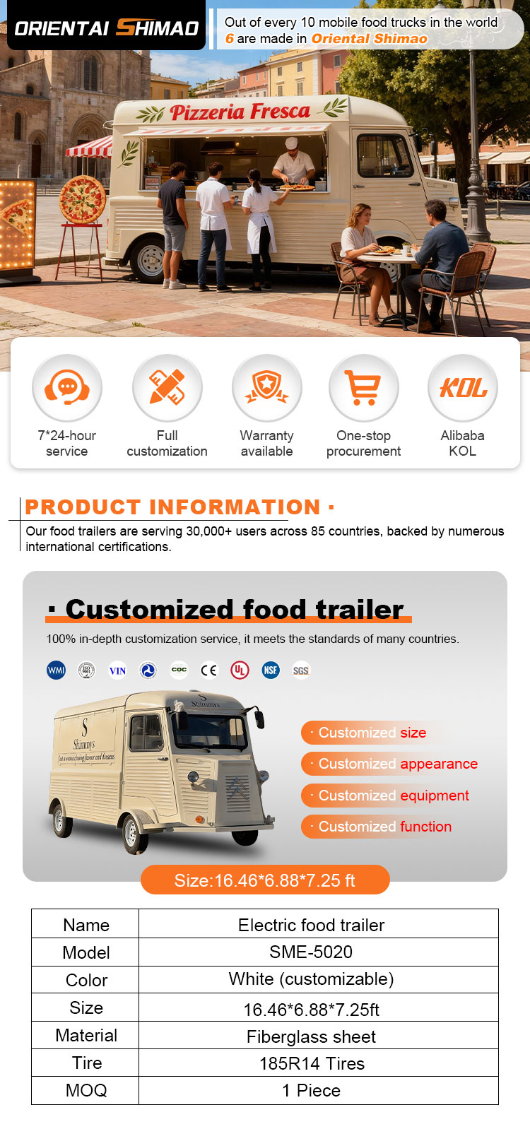 हम बिक्री के लिए मोबाइल फूड कार्ट की पेशकश कर सकते हैं प्रमाणपत्र: डीओटी, सीई, एसजीएस, एससीआई, आईएसओ, सीओसी,